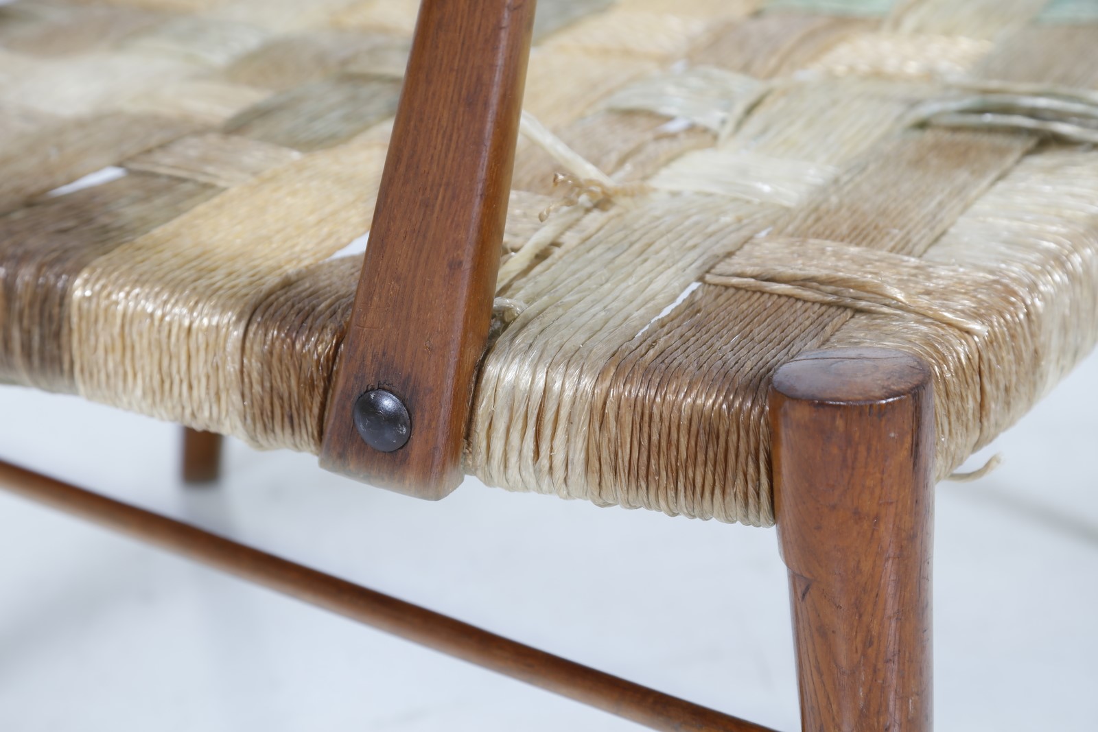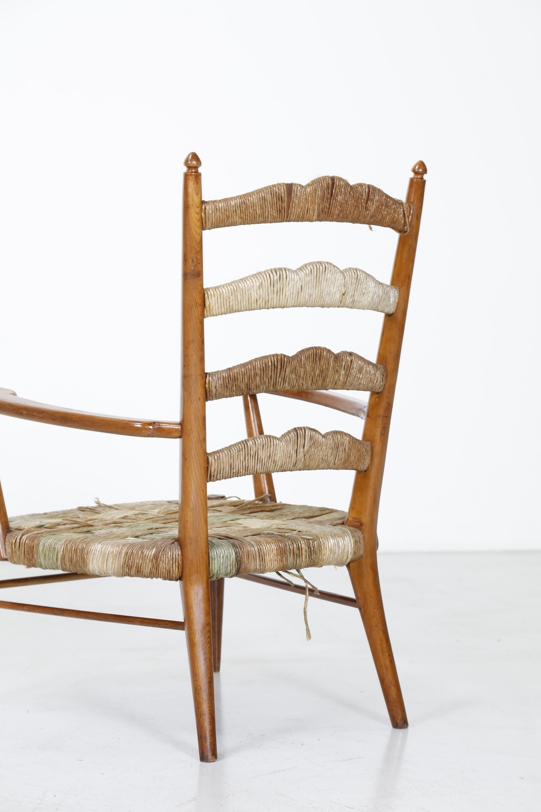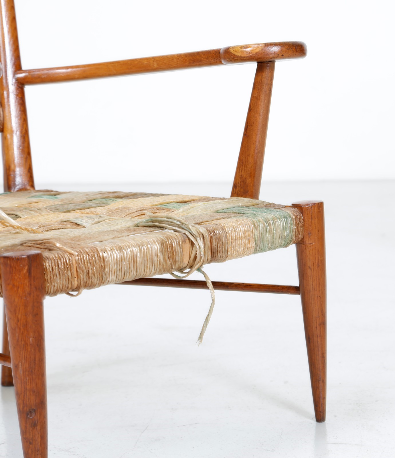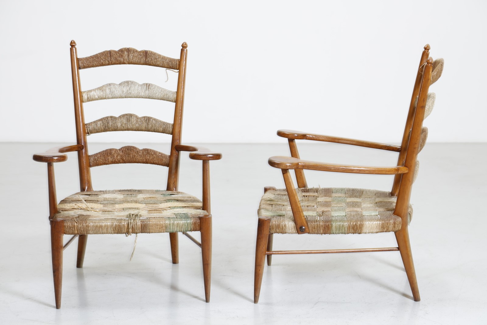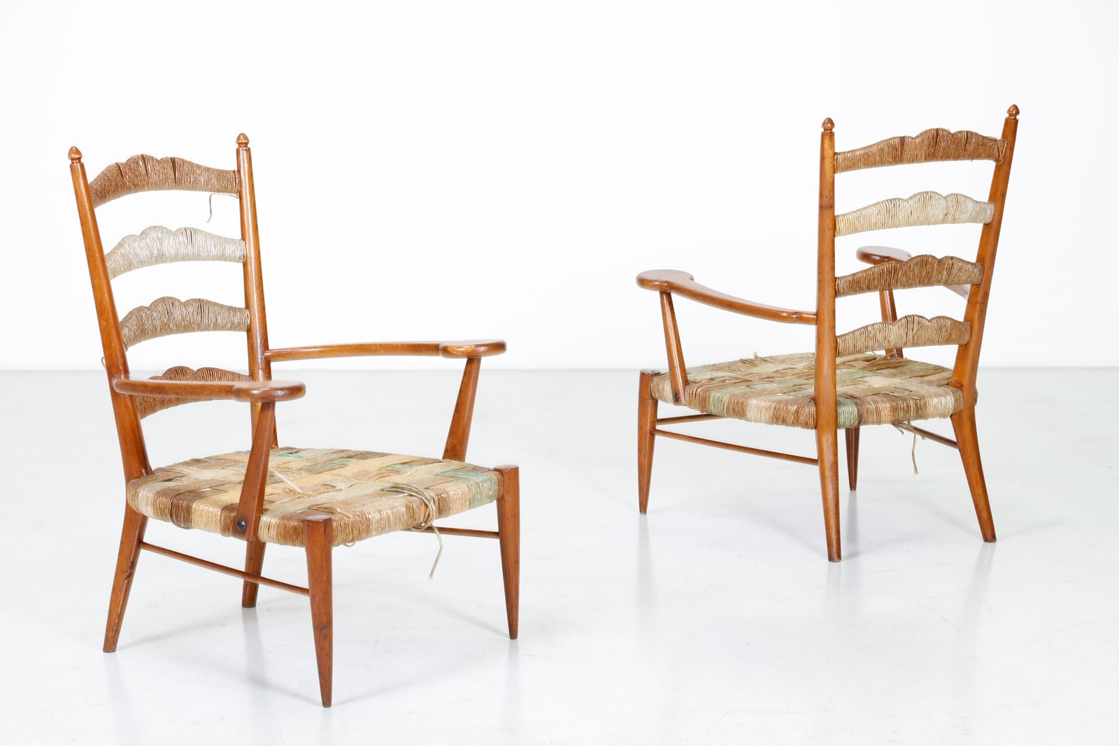 PECORINI GUGLIELMO Pair of armchairs. Oak. Cm 68,00 x 90,50 x 66,00. Oak wood structure, seat and back in woven raffia.
