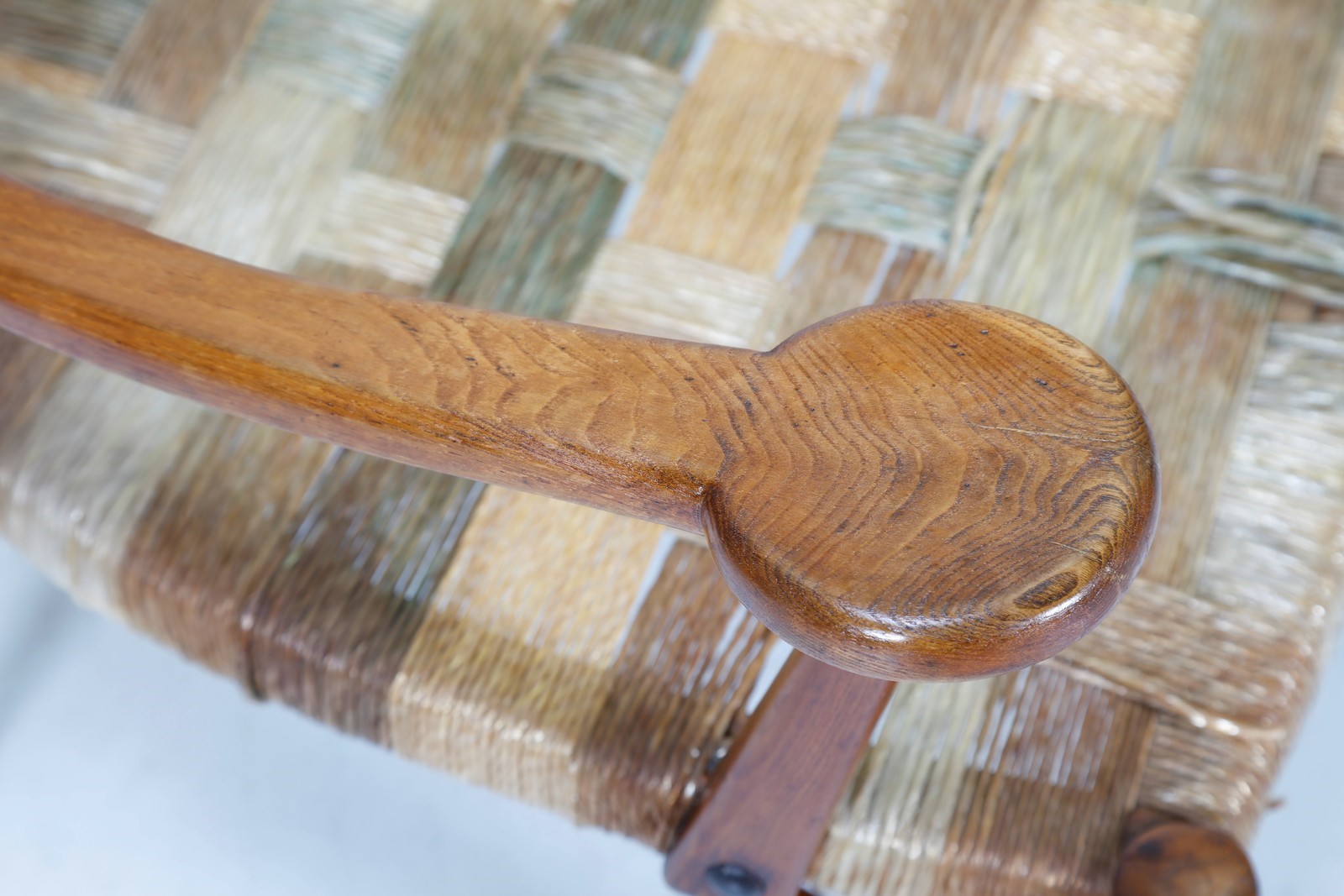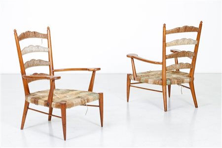 PECORINI GUGLIELMO Coppia di poltrone. Legno di rovere. Cm 68,00 x 90,50 x 66,00. Struttura in legno di rovere, seduta e schienale in rafia intrecciata.