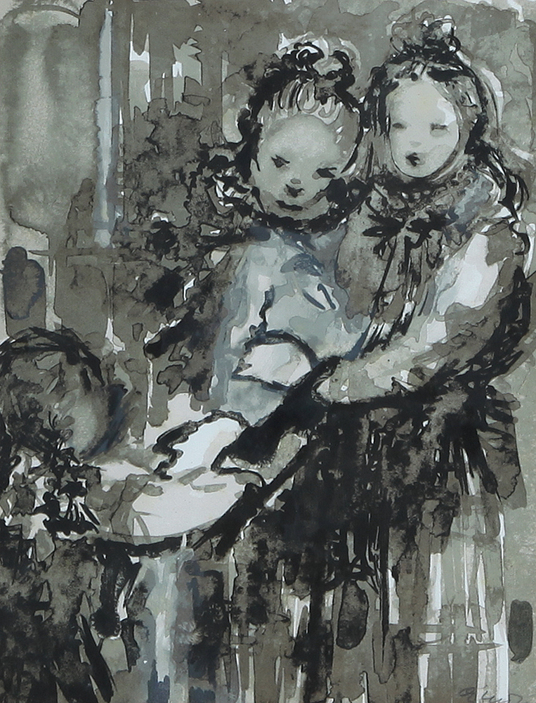 GIUSEPPE AJMONE Carpignano Sesia 17/02/1923 - 07/04/2005 Figure gouache su carta cm. 30x23, firma in basso a destra.