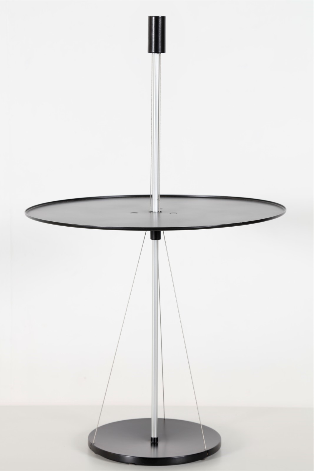 MANIFATTURA ITALIANA Tavolino . Metallo cromato e legno laccato. Cm 48,00 x...