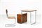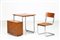 COVA MILANO Desk and chair. Wood and chromed metal. Cm 85,00 x 70,00 x 62,00. Structure in chromed metal and wooden tubular, 50s.
