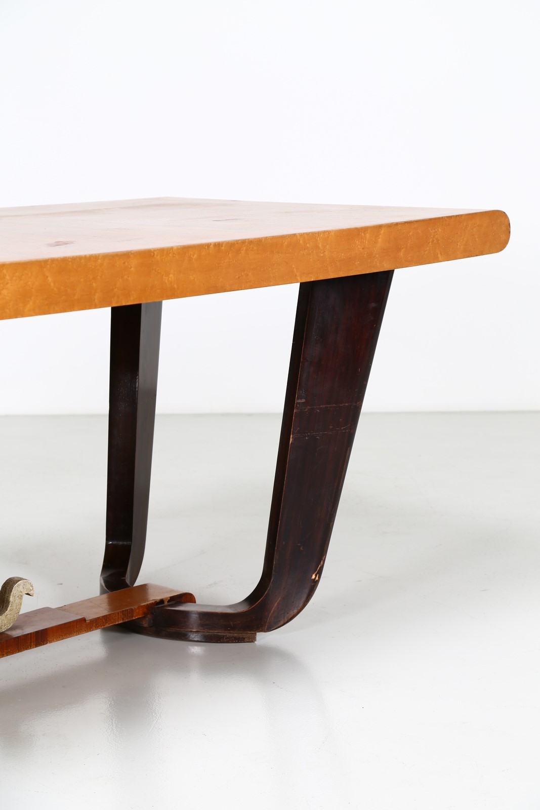 MANIFATTURA ITALIANA Tavolo. Legno. Cm 200,00 x 79,00 x 90,00. Base e piano in legni di varie essenze, anni 40.