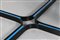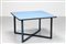 RINALDI GASTONE Tavolo. legno laminato e metallo laccato . Cm 120,00 x 73,50 x 120,00. Base in metallo laccato nero con dettagli azzurri, piano in laminato. Per Thema, anni 70.