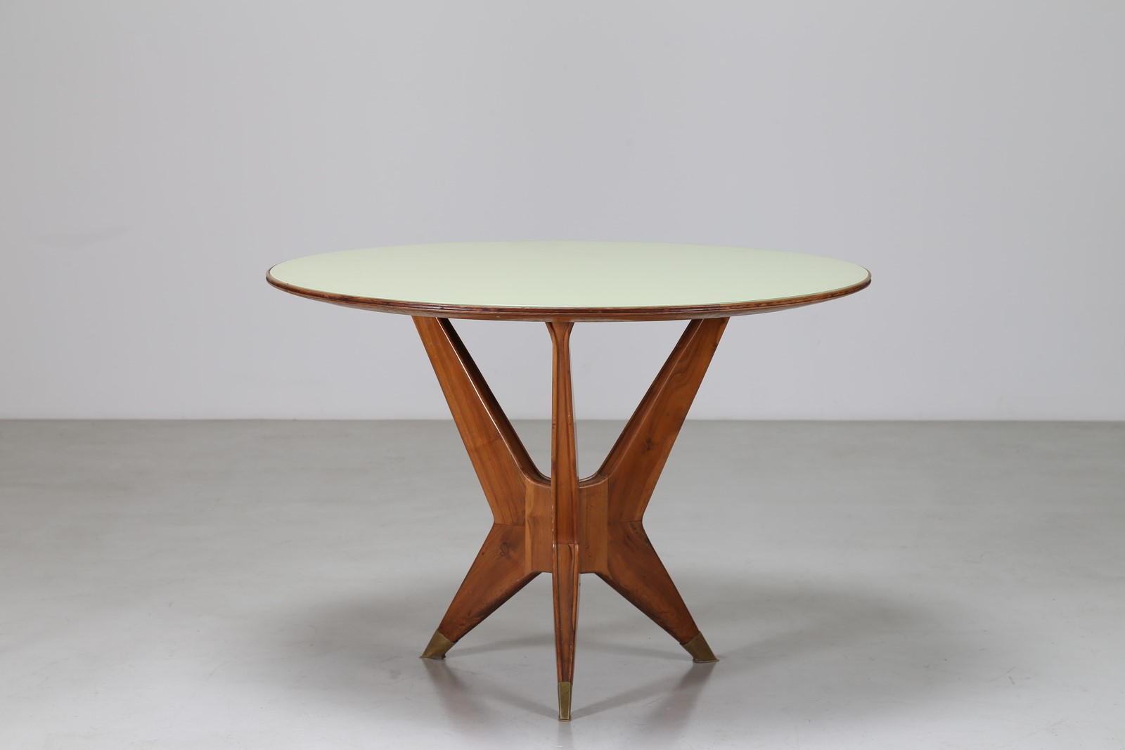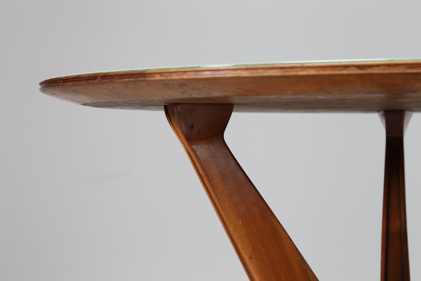 PARISI ICO (1916 - 1996) Attrib. Tavolo tondo. Legno di noce e vetro. Cm 105,00 x 77,00 x 105,00. Base in legno di noce, piano in vetro. Anni 50.