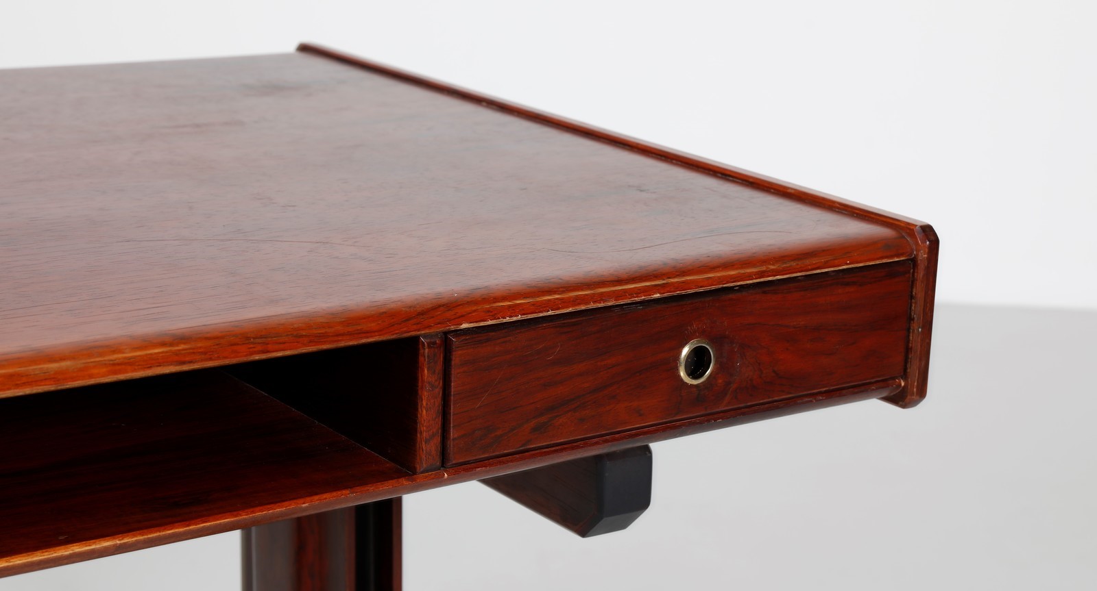 FRATTINI GIANFRANCO (1926 - 2004) Desk. Rosewood. Cm 130,00 x 84,00 x 81,00. Rosewood structure, for Bernini, 60s.