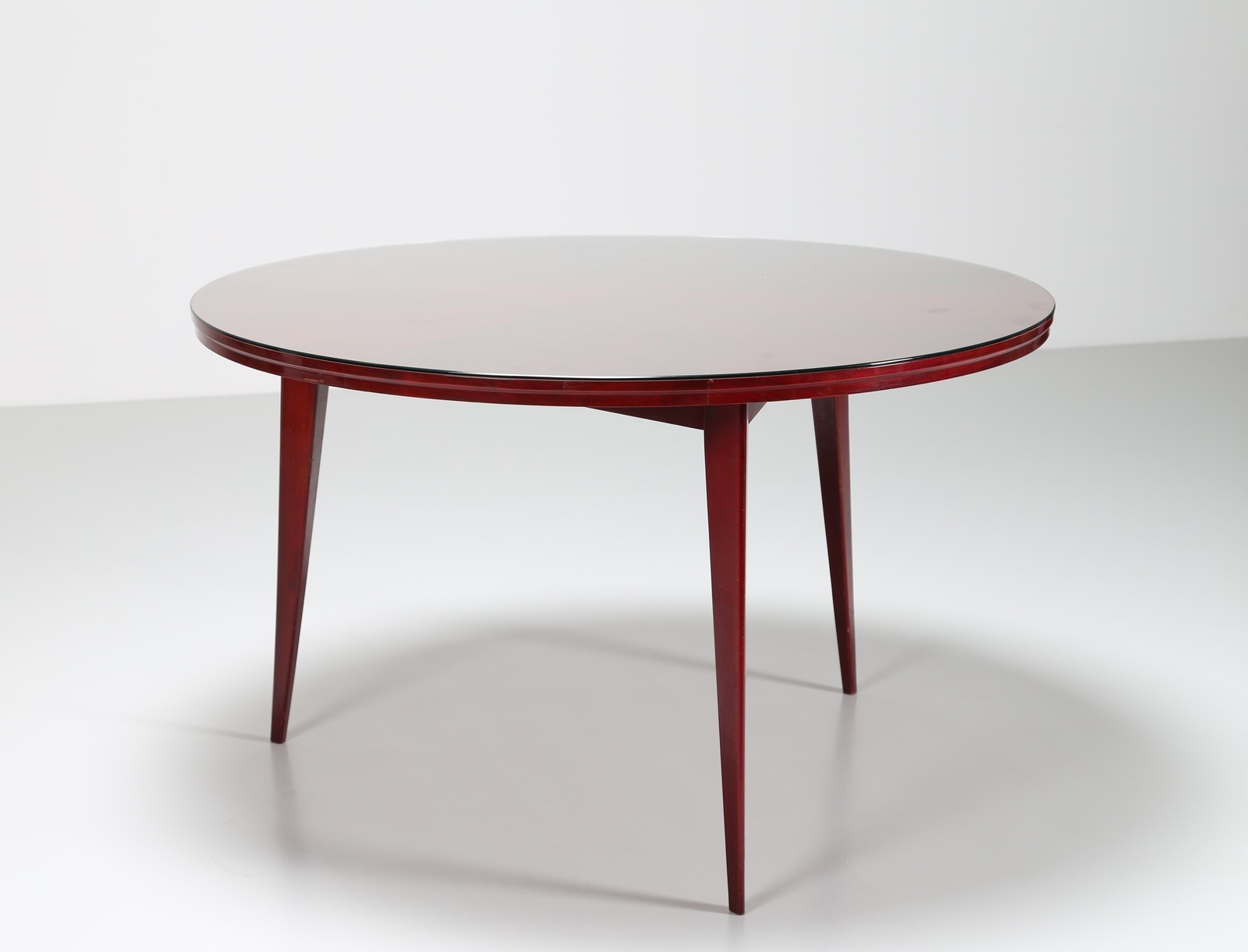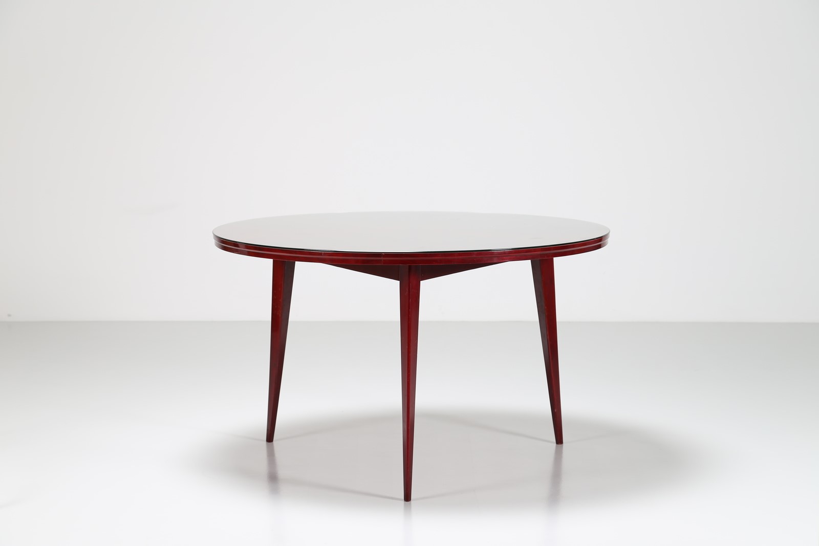 CAVATORTA SILVIO Table. mahogany and glass. Cm 130,00 x 77,00 x 130,00. Mahogany base and glass top, for Mobili Cavatorta, 50s.