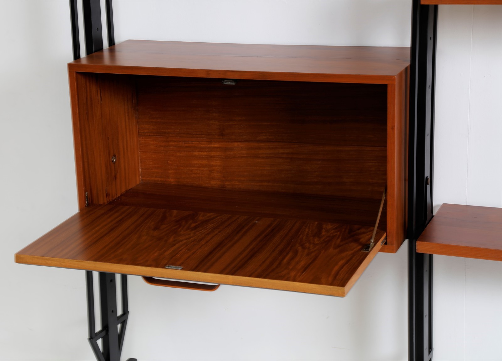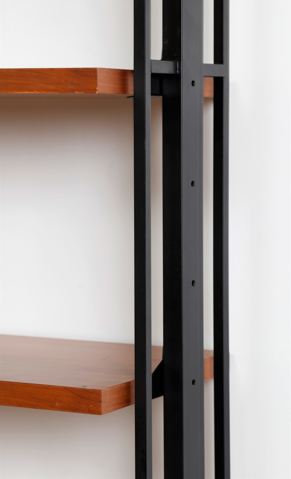 MANIFATTURA ITALIANA Libreria. Legno di teak e metallo. . Struttura in metallo laccato e ottone, piani in legno di teak, anni 60.