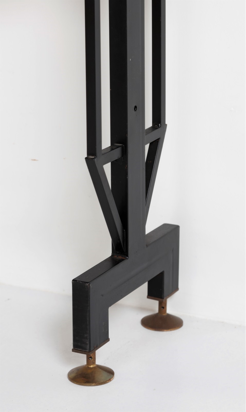 ITALIAN MANUFACTURE Bookcase. Plywood and metal. . Structure in lacquered metal and brass, tops in teak wood, 60s.
