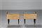 MANIFATTURA ITALIANA Coppia di comodini. Legno, ottone, vetro. Cm 54,00 x 65,00 x 34,00. Base in legno laccato, puntali in ottone, struttura in legno di palissandro con ripiani in vetro. Anni 50.
