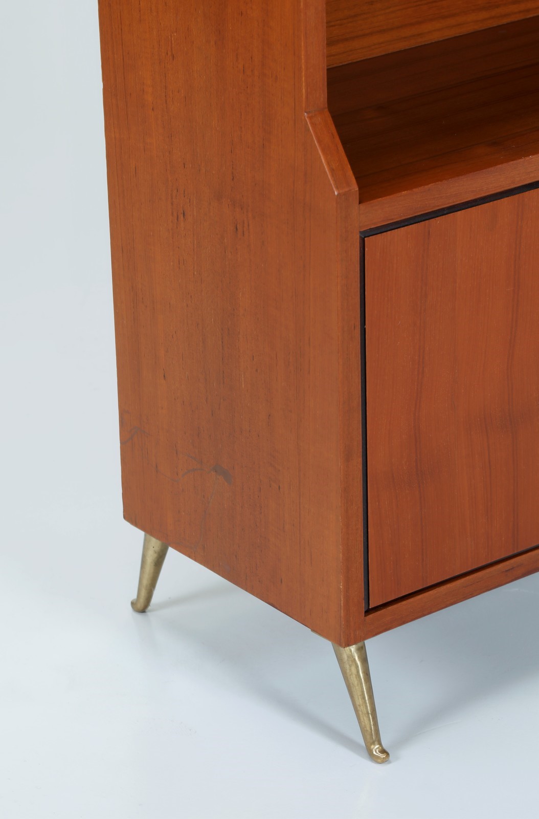 ITALIAN MANUFACTURE Cabinet. Wood and brass. Cm 139,00 x 40,00. Wooden frame, brass feet. 50s.