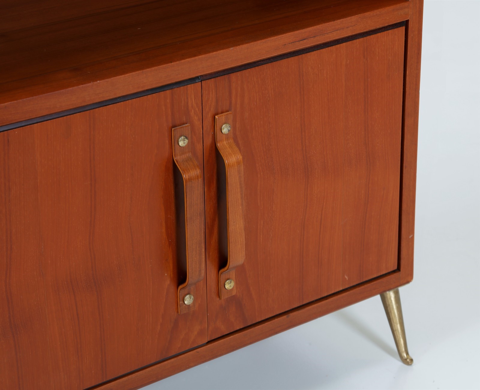 MANIFATTURA ITALIANA Mobiletto. Legno e ottone. Cm 139,00 x 40,00. Struttura in legno, piedi in in ottone. Anni 50.