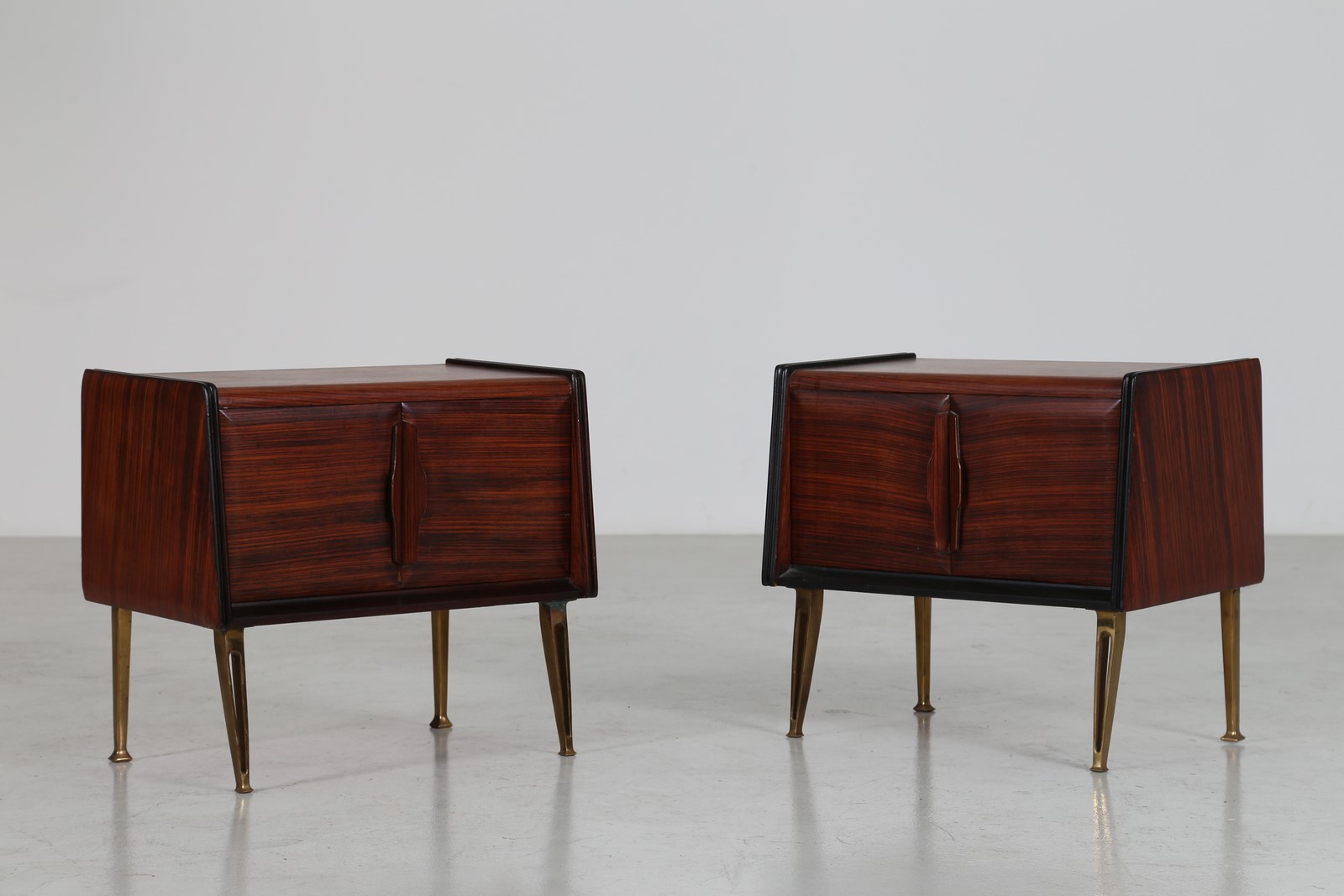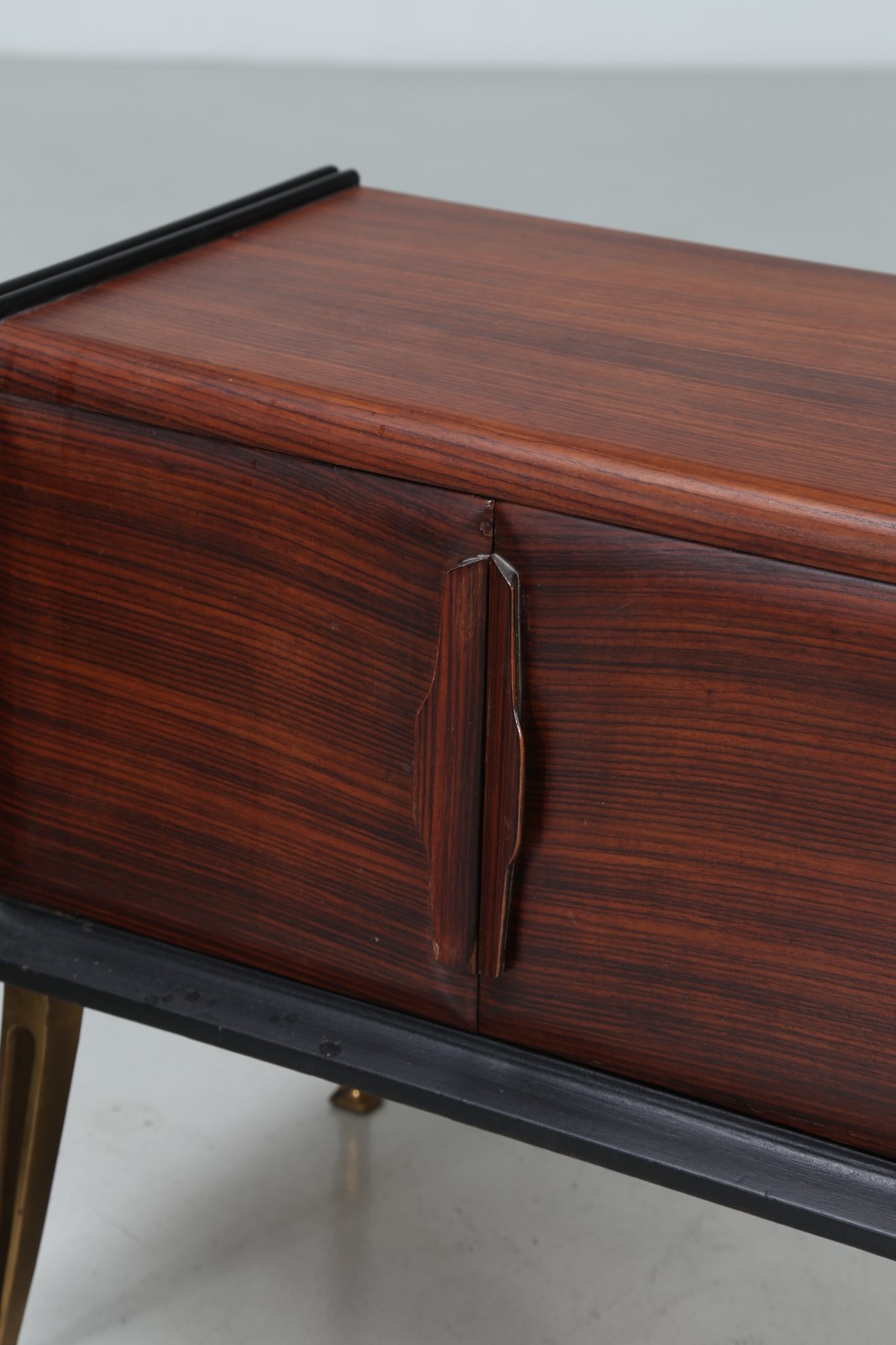 MANIFATTURA ITALIANA Coppia di comodini. Legno di palissandro e ottone. Cm...
