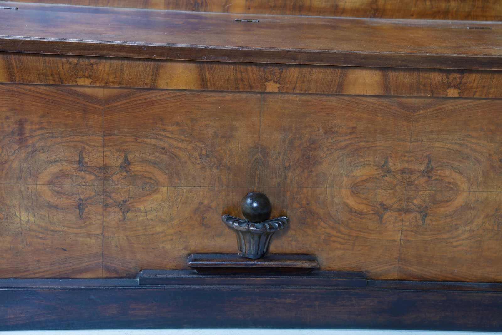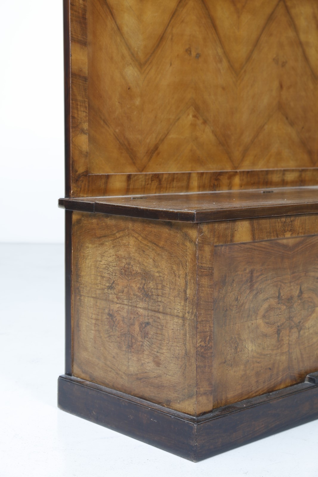 GIOVANNI GUERRINI (1887 - 1972) Decò bench. Walnut burl. Cm 114,50 x 116,50 x 44,00. Walnut structure with brass details. Openable compartment, made by Ebanisteria Casalini Faenza, 30s.