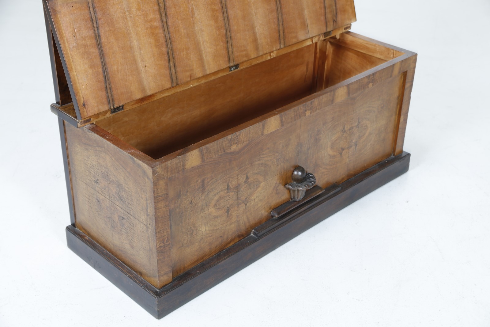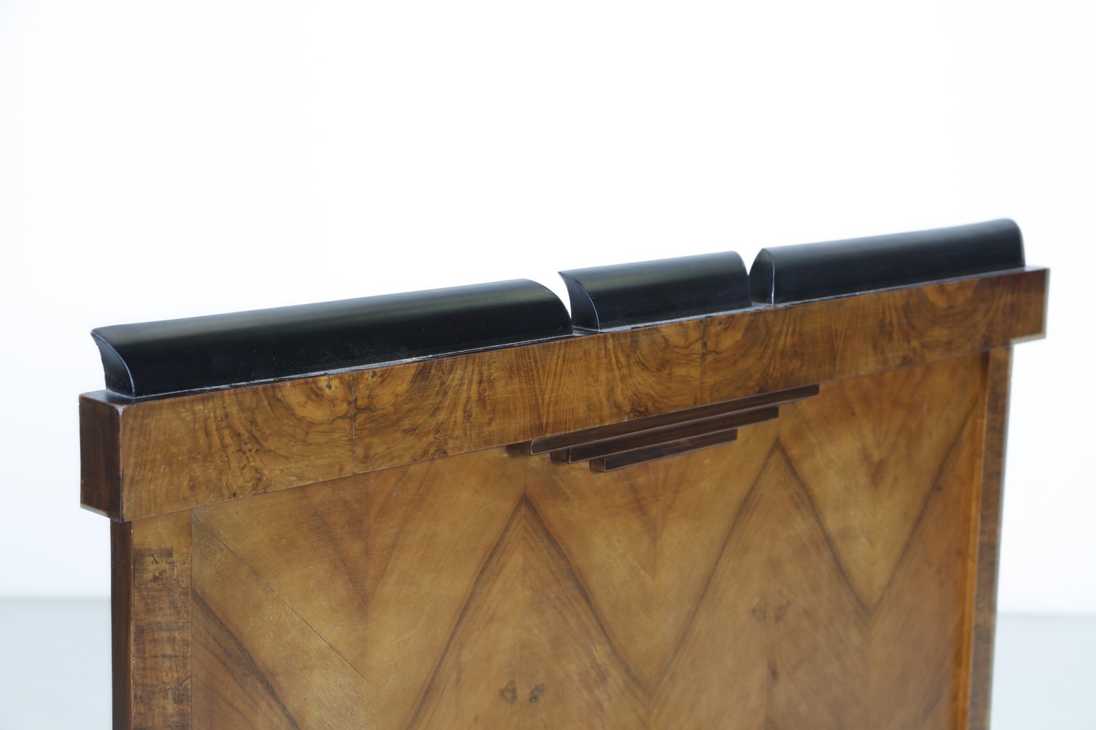 GIOVANNI GUERRINI (1887 - 1972) Panca decò. Radica di noce. Cm 114,50 x 116,50 x 44,00. Struttura in radica di noce con dettagli in ottone. Vano apribile, eseguita da Ebanisteria Casalini Faenza, anni 30.