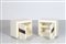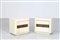 FRIGERIO LUCIANO Pair of bedside tables. Wood and bronze. Cm 54,00 x 51,00 x 40,00. Structure in white lacquered wood and bronze sculptural central detail. 60's.