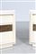 FRIGERIO LUCIANO Coppia di comodini. Legno e bronzo. Cm 54,00 x 51,00 x 40,00. Struttura in legno laccato bianco e dettaglio centrale scultoreo in bronzo. Anni 60.