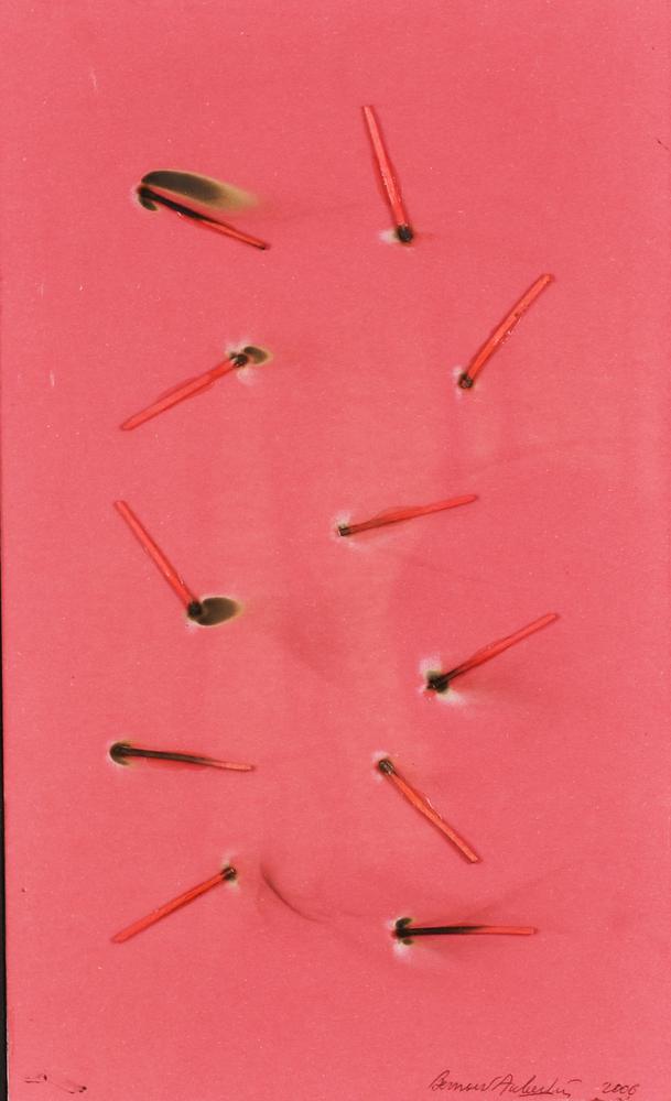 Bernard Aubertin DESSIN DE FEU fiammiferi bruciati su carta, cm 35x21 firmato e datato eseguito nel 2006 L'opera è accompagnata da autentica dell'Archivio Opere Bernard Aubertin su fotografia