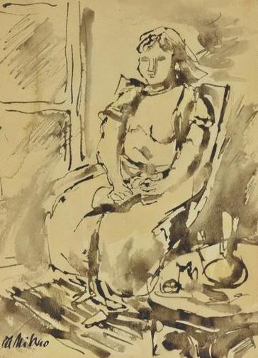 Lotto 19 | Giulio Da Milano DONNA SEDUTA acquarello su carta, cm 29x21 sul fronte: firma