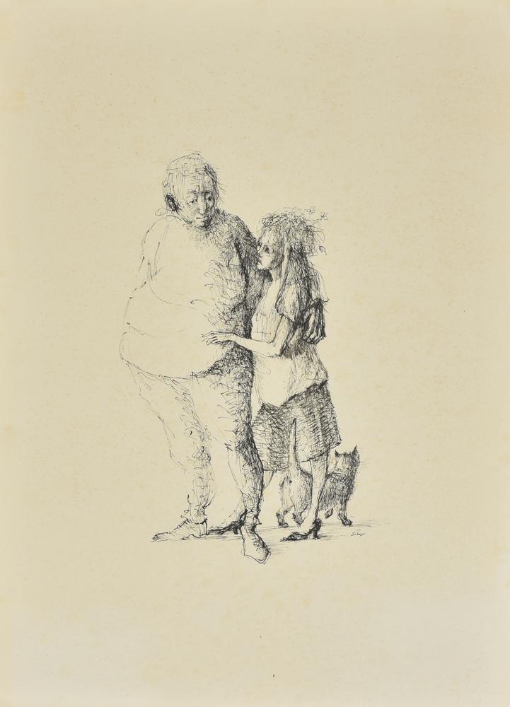 Stanislao Lepri VECCHIO CON BAMBINA china su carta, cm 46x34 sul fronte:...