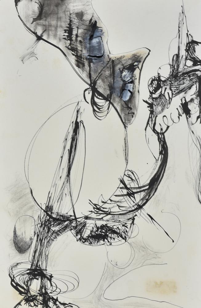 Eva Bechmann COMPOSIZIONE china e acquarello su carta, cm 40,5x27 sul fronte: sigla e data eseguita nel 1965