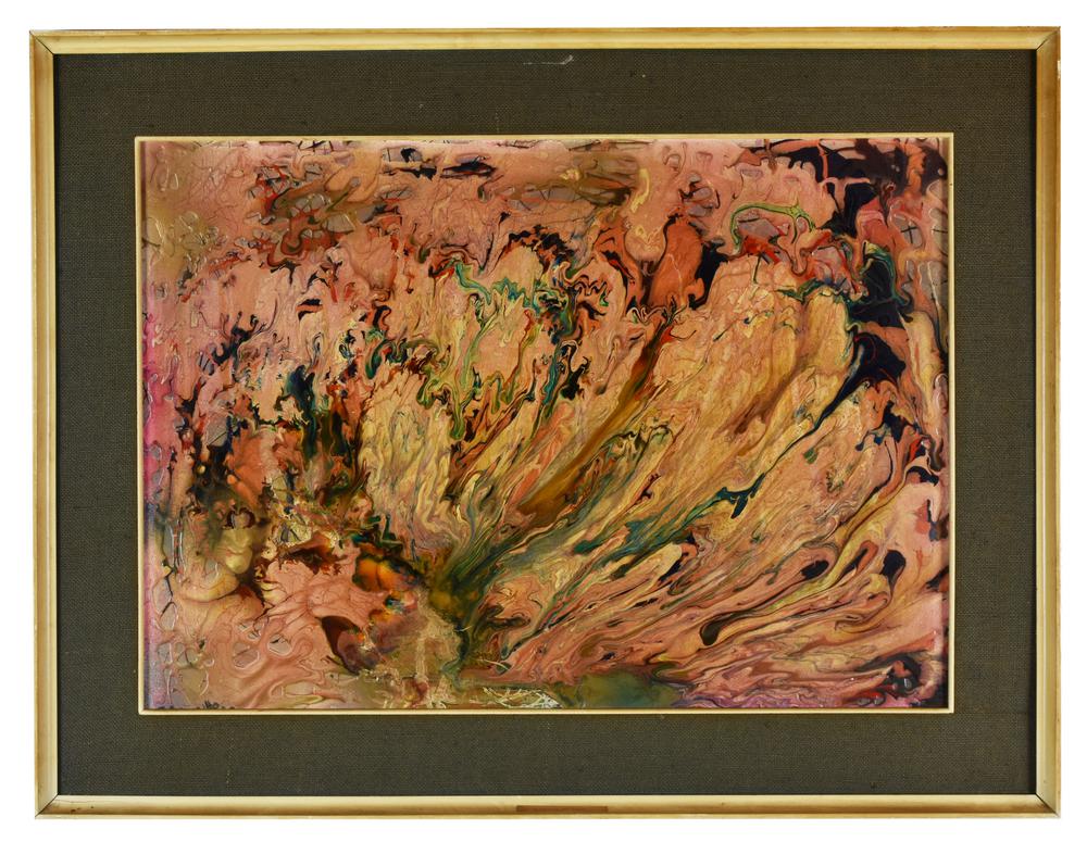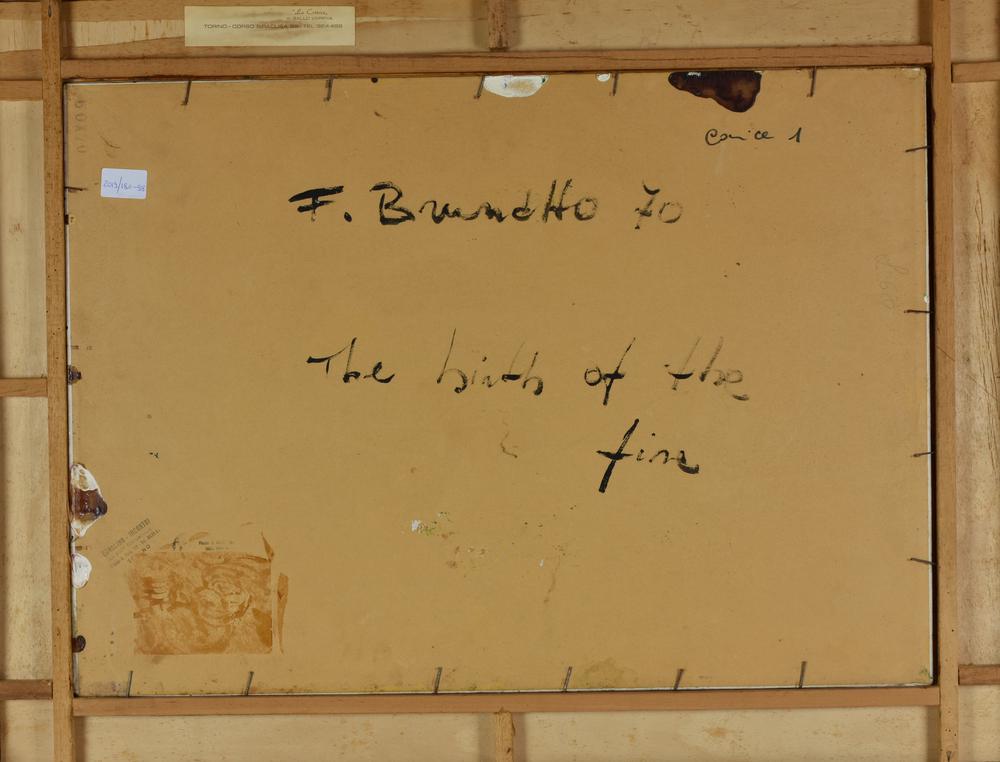 Franco Brunatto THE BIRD OF THE FIRE tecnica mista su cartone telato, cm 50x70 sul fronte: firma e data sul retro: firma, titolo e data eseguita nel 1970