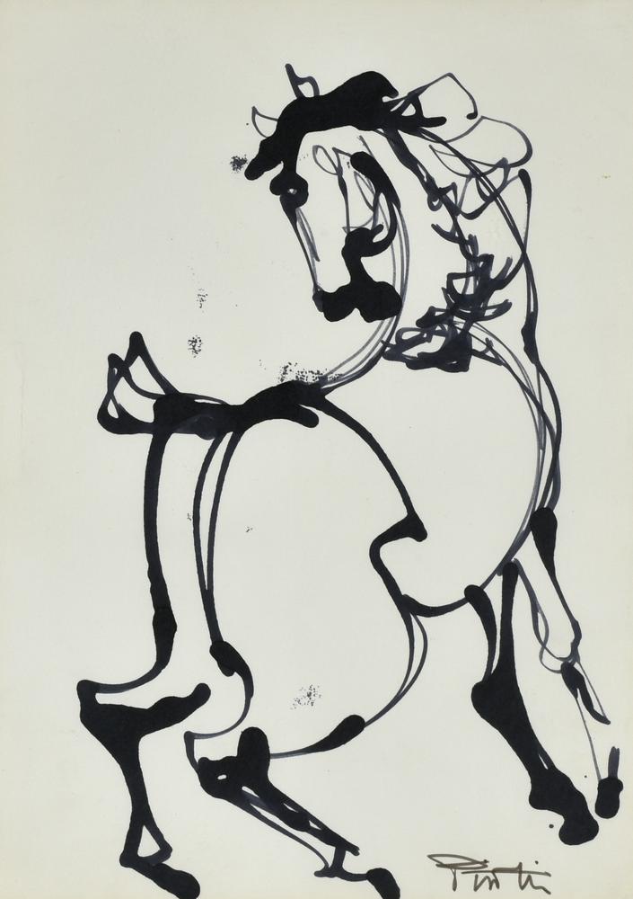 Paolo Pisotti CAVALLO china su carta, cm 35x25 sul fronte: firma