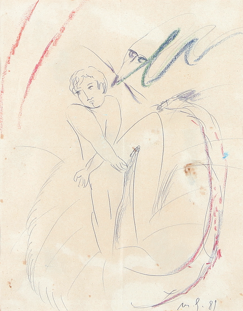 MIMMO GERMANA Catania 02/07/1944 - Busto Arsizio 1992 Senza titolo, 1989 tecnica mista su carta cm. 30,5x24, sigla dell'artista e anno in basso a destra, etichetta della Galleria Emilio Mazzoli (MO) al retro, timbro e firma per autenticità e provenienza della Galleria Emilio Mazzoli (MO) su foto.