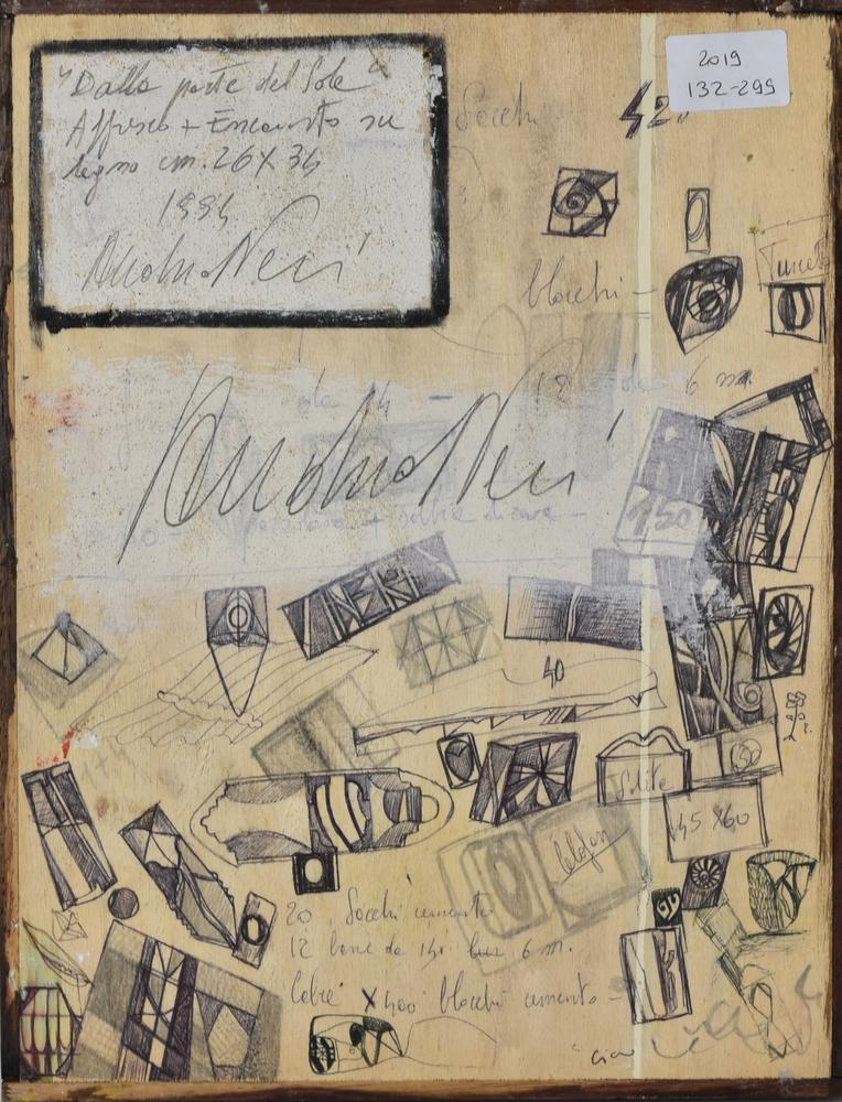 Neri DALLA PARTE DEL SOLE affresco più encausto su legno, cm 34x26 sul retro:...