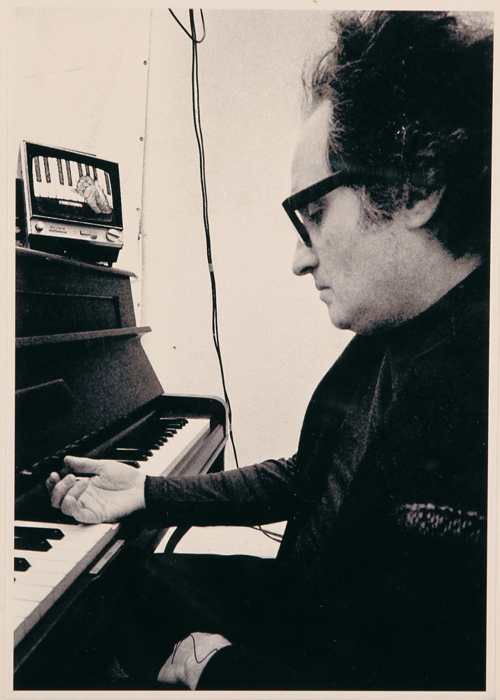 GIUSEPPE CHIARI Firenze 26/09/1926 - Firenze 10/05/2007 Il suono, 1974 fotografia cm. 29,8x21, esemplare P.A. AT22, firma in basso a sinistra, firma, titolo, anno, località e timbro del fotografo Gianni Melotti al retro, particolare della foto pubblicato su "Art/tapes/22, tra Firenze e Santa Teresa dentro le quinte dell'arte ('73/'87)", Edizioni Cavallino (VE), pagina 17.