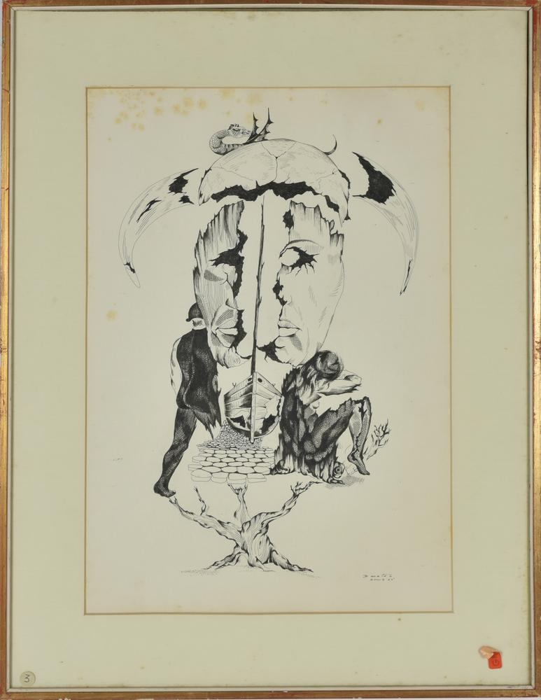 Bastos ADAMO ED EVA china su carta, cm 48x32 sul fronte: firma e data eseguita nel 1965 L'opera presenta alcune macchie di umidità