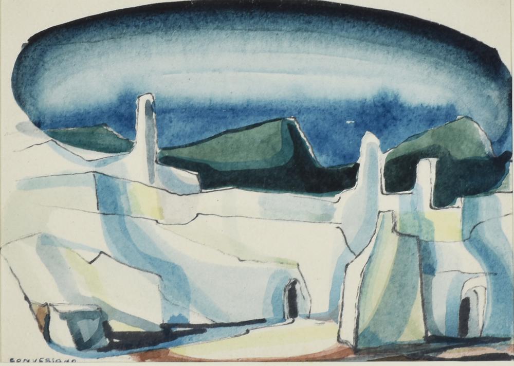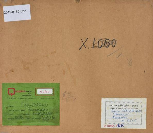 Bruno Conversano PAESAGGIO acquarello su carta, cm 10,5x15 sul fronte: firma