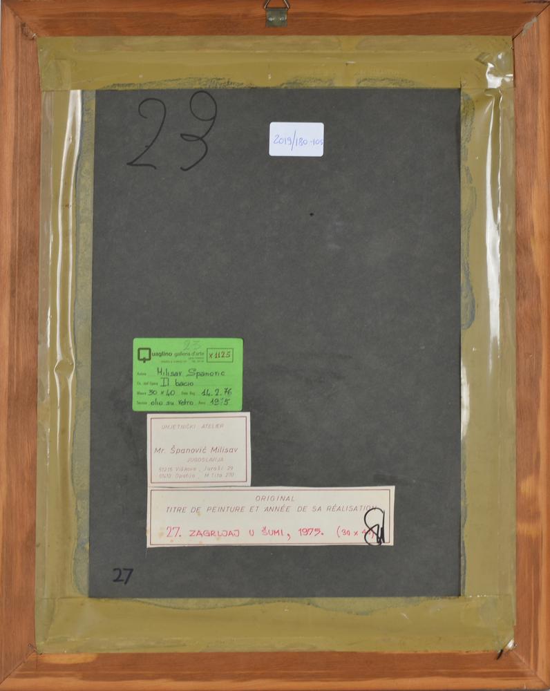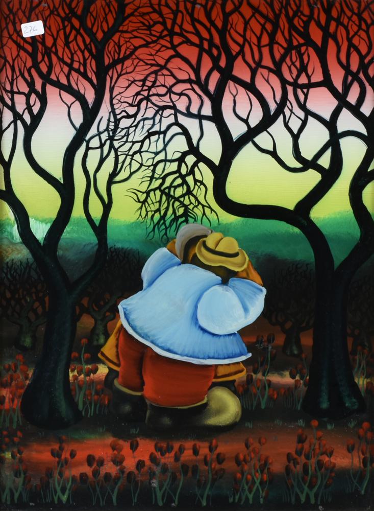 Milisav Spanovic IL BACIO olio su vetro, cm 40x30 sul retro: etichetta dell'atelier dell'artista eseguito nel 1975