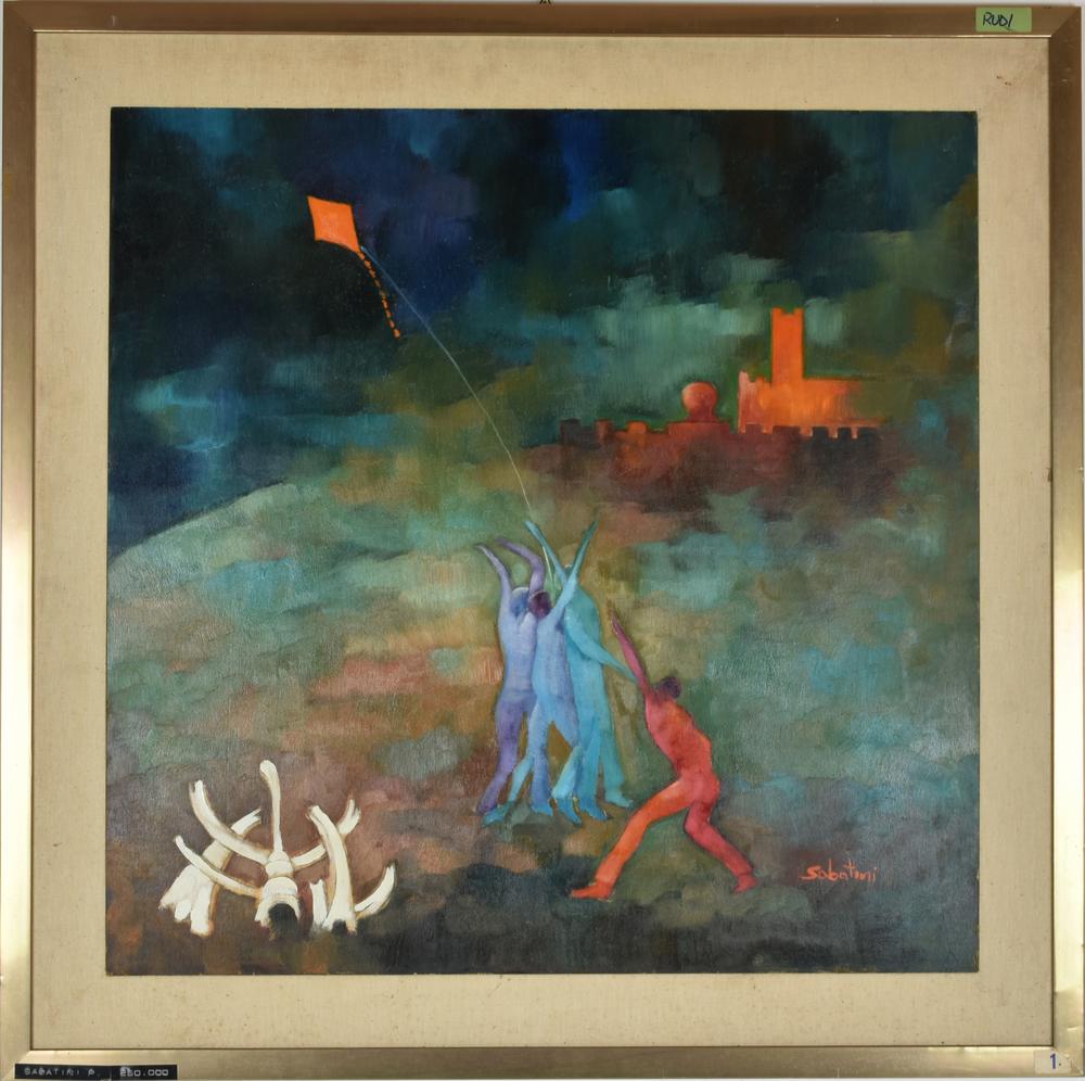 Piero Sabatini AQUILONE olio su tavola, cm 70x70 sul fronte: firma