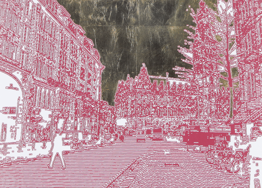 LEONIDA DE FILIPPI Milano 17/04/1969 Paesaggio urbano tecnica mista su carta cm. 49x67,5; firma, titolo e tecnica al retro, dichiarazione d'autenticità dell'artista su foto.