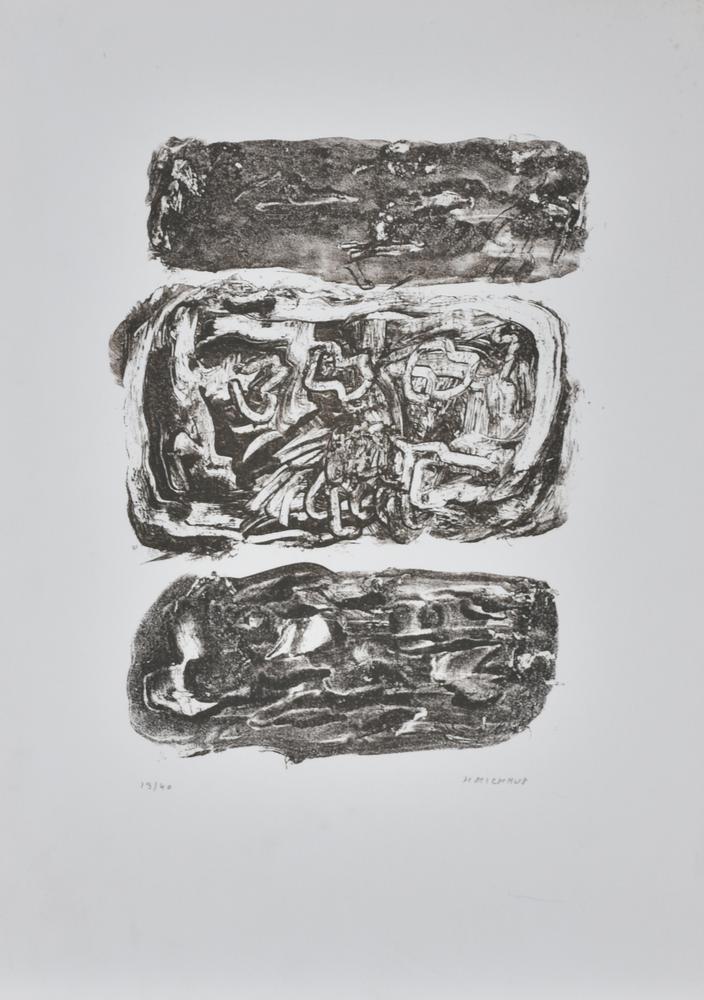 Michaux SENZA TITOLO serigrafia su carta, cm 45x32 esemplare 13 su 40 sul fronte: firma L'opera presenta macchie di umidità al margine superiore