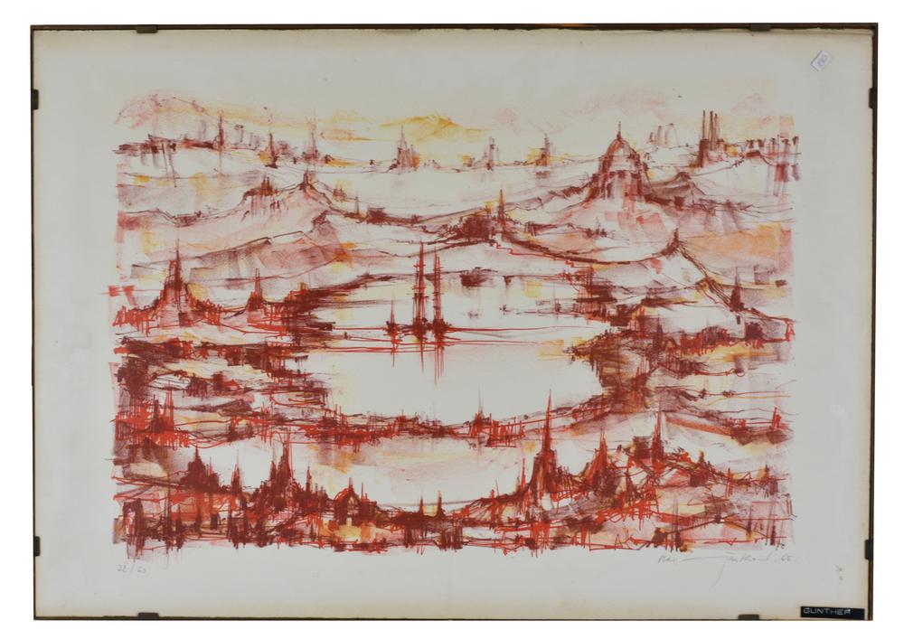 Max Gunther PAESAGGIO ROSSO litografia su carta, cm 50x70 esemplare 38 su 60...