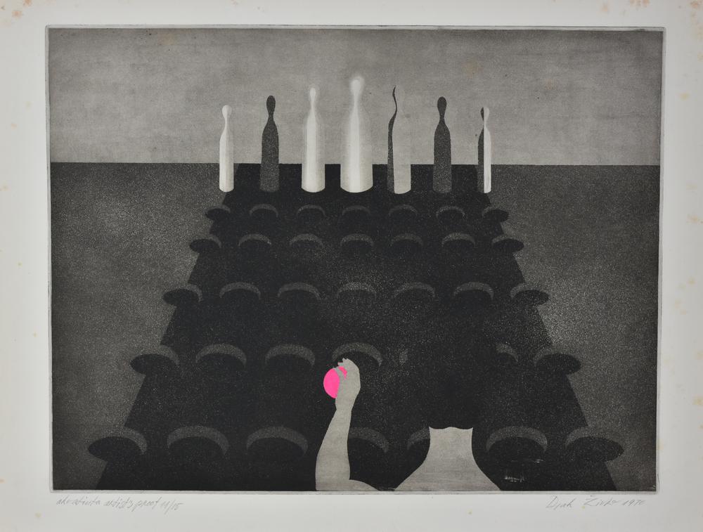 Djak Zivko SENZA TITOLO acquatinta su carta, cm 56,2x73 (lastra cm 47,4x62,4) esemplare prova d'autore 11 su 15 sul fronte: firma e data eseguita nel 1970 L'opera presenta diffuse macchie di umidità