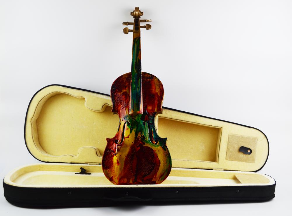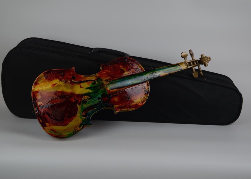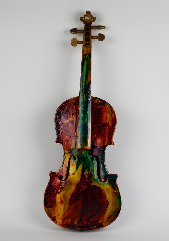 Alfredo Rapetti Mogol VIOLINO tecnica mista su violino, cm 60x21x8 firmato e datato eseguito nel 2012