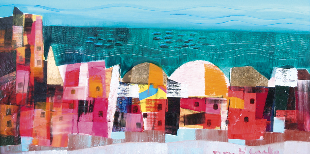 VITTORIOMARIA DI CARLO S. Marco in Lamis (Fg) 1939 Paesaggio olio e collage su tela cm. 30x60, firma in basso a destra e al retro, dichiarazione d'autenticità e archivio dell'artista su foto.