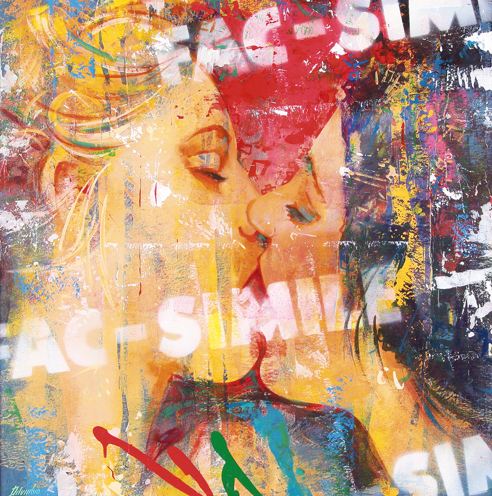 MAURIZIO DELVECCHIO Basilea (Svizzera) 22/05/1962 Fac-simile, 2004 olio su tela cm. 70x70, firma in basso a sinistra, firma, titolo, anno e tecnica al retro.