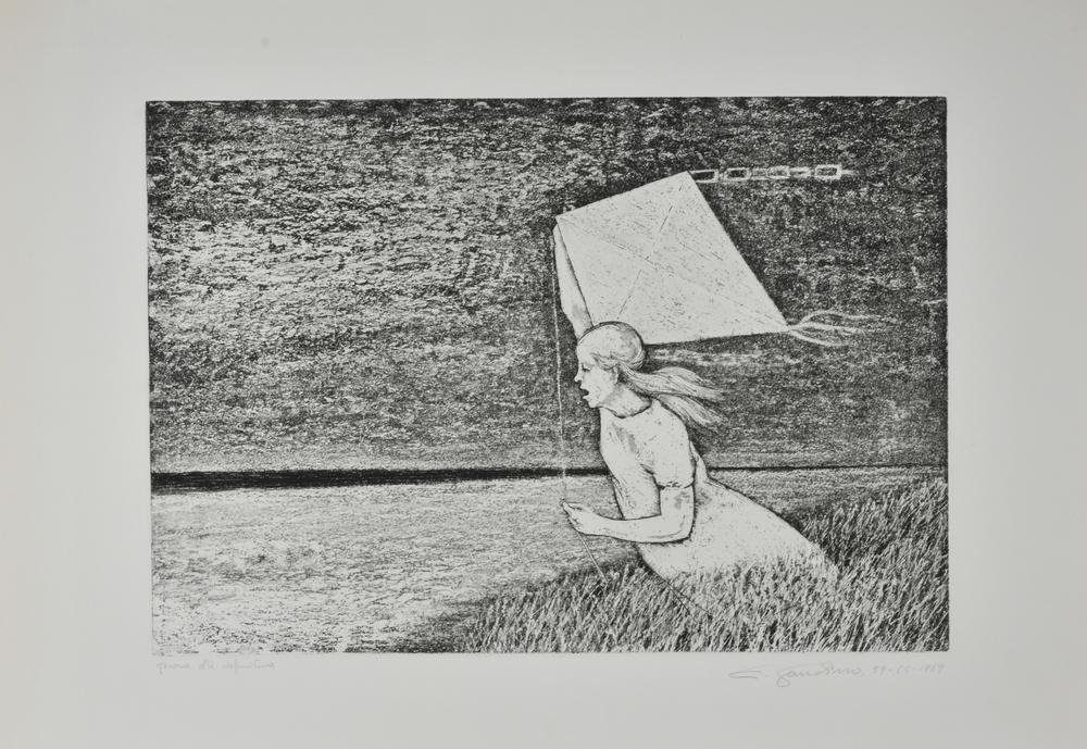 Enrico Gaudino L'AQUILONE acquaforte e acquatinta su carta, cm 50x70 (lastra cm 34x50) esemplare P.A. definitiva sul fronte: firma e data eseguita nel 1969