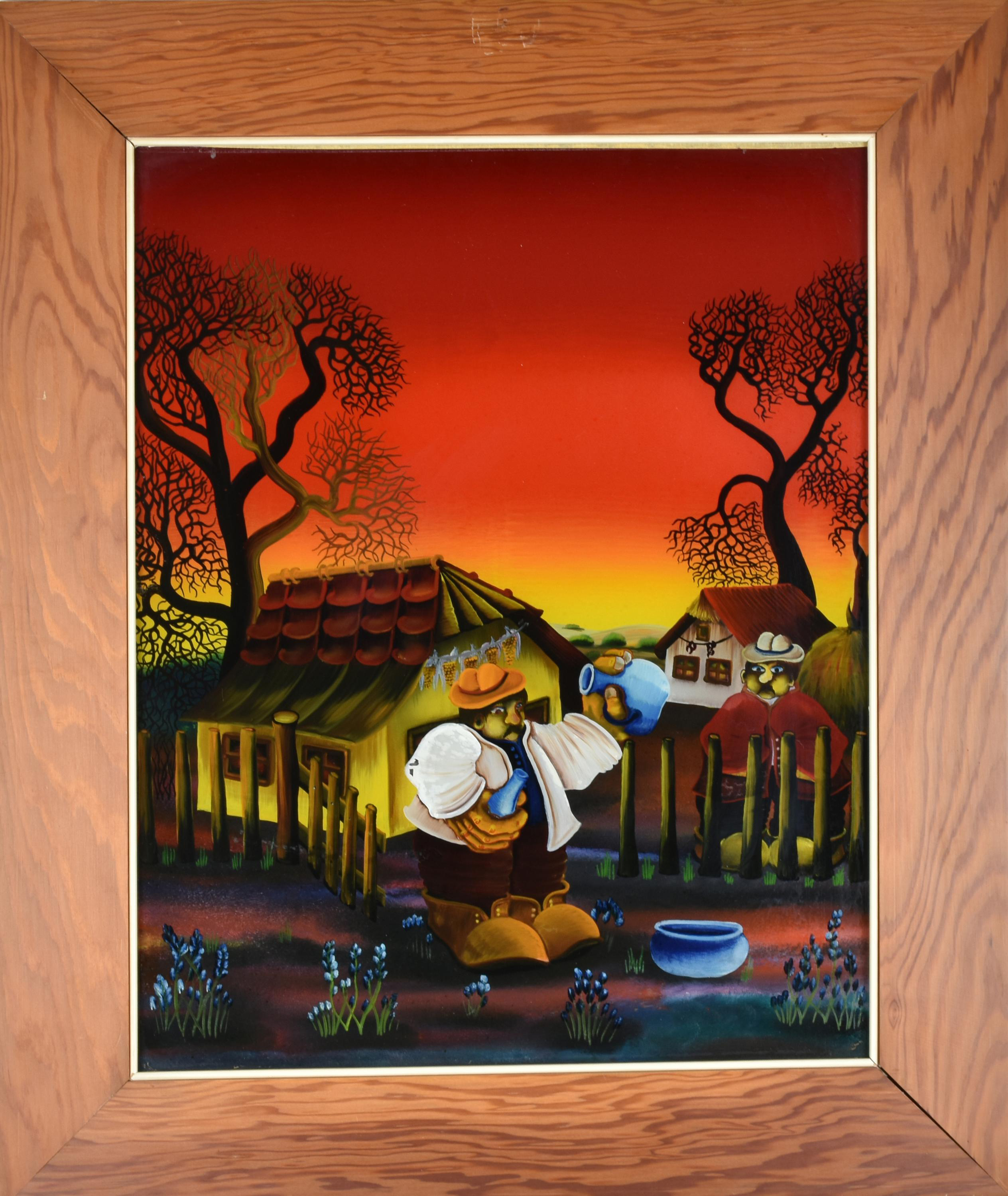 Spanovic Milisav LA BEVUTA olio su vetro, cm 52x42 sul retro: etichetta dell'atelier dell'artista eseguito nel 1975
