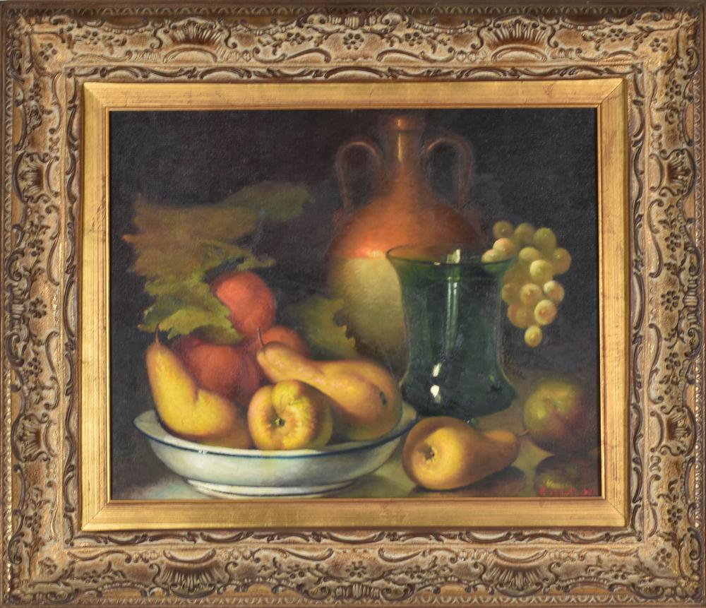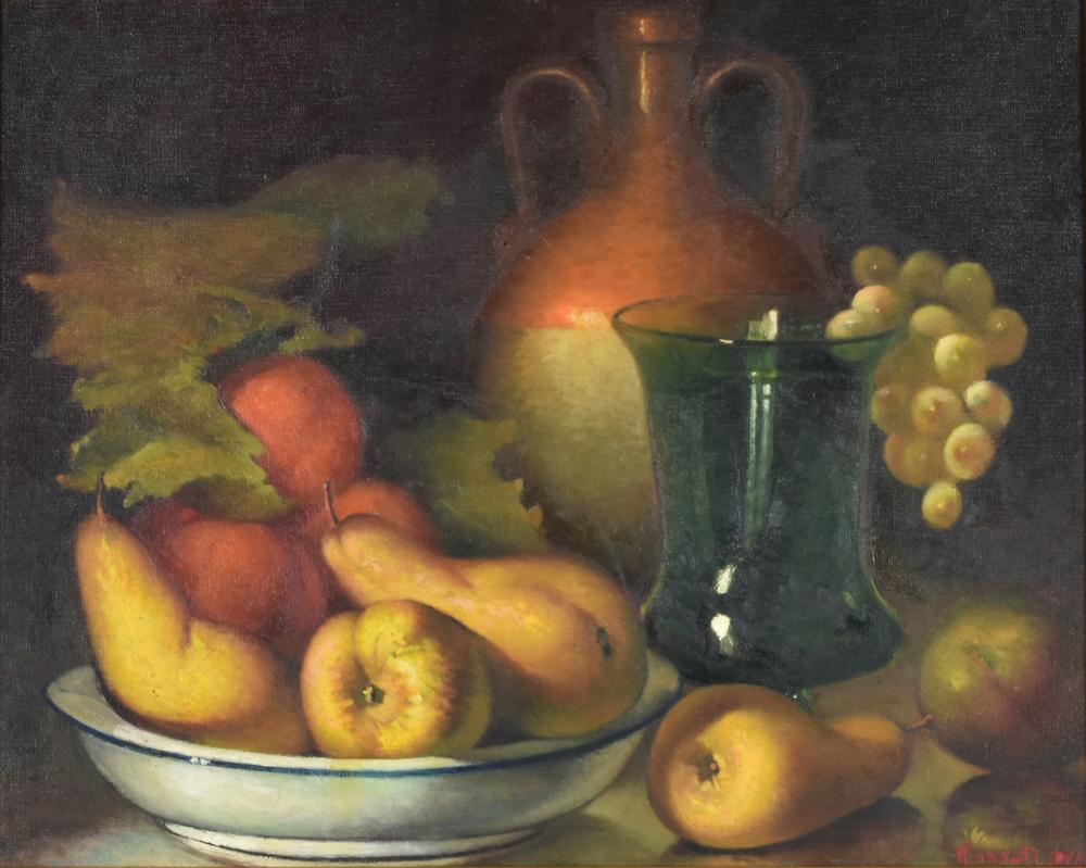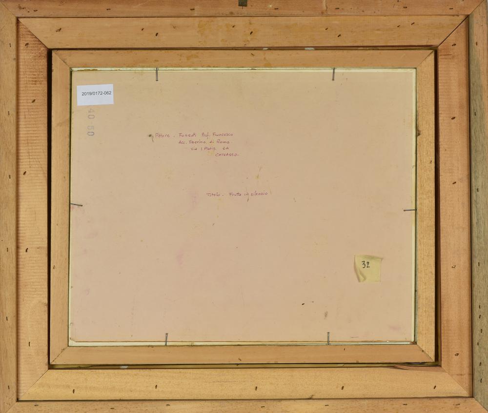 Fossati Francesco FRUTTA IN SILENZIO olio su cartone telato, cm 40x50 sul fronte: firma
