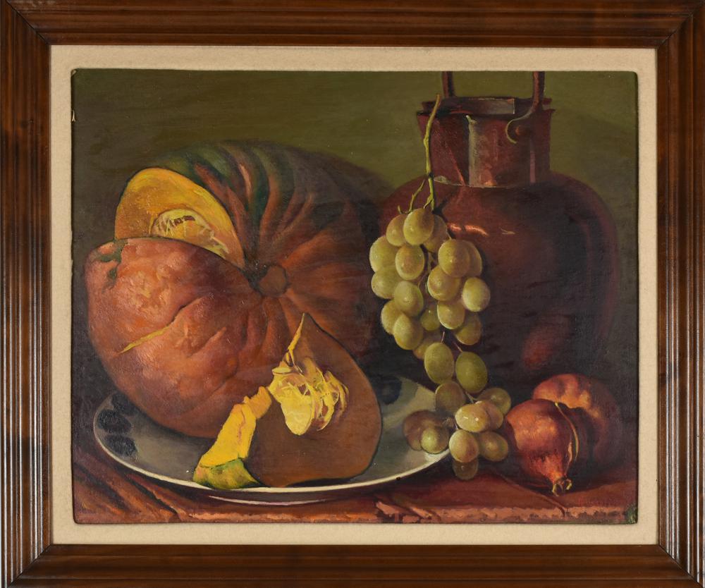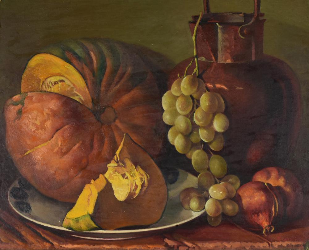 Fossati Francesco NATURA MORTA olio su cartone, cm 40x50 sul fronte: firma