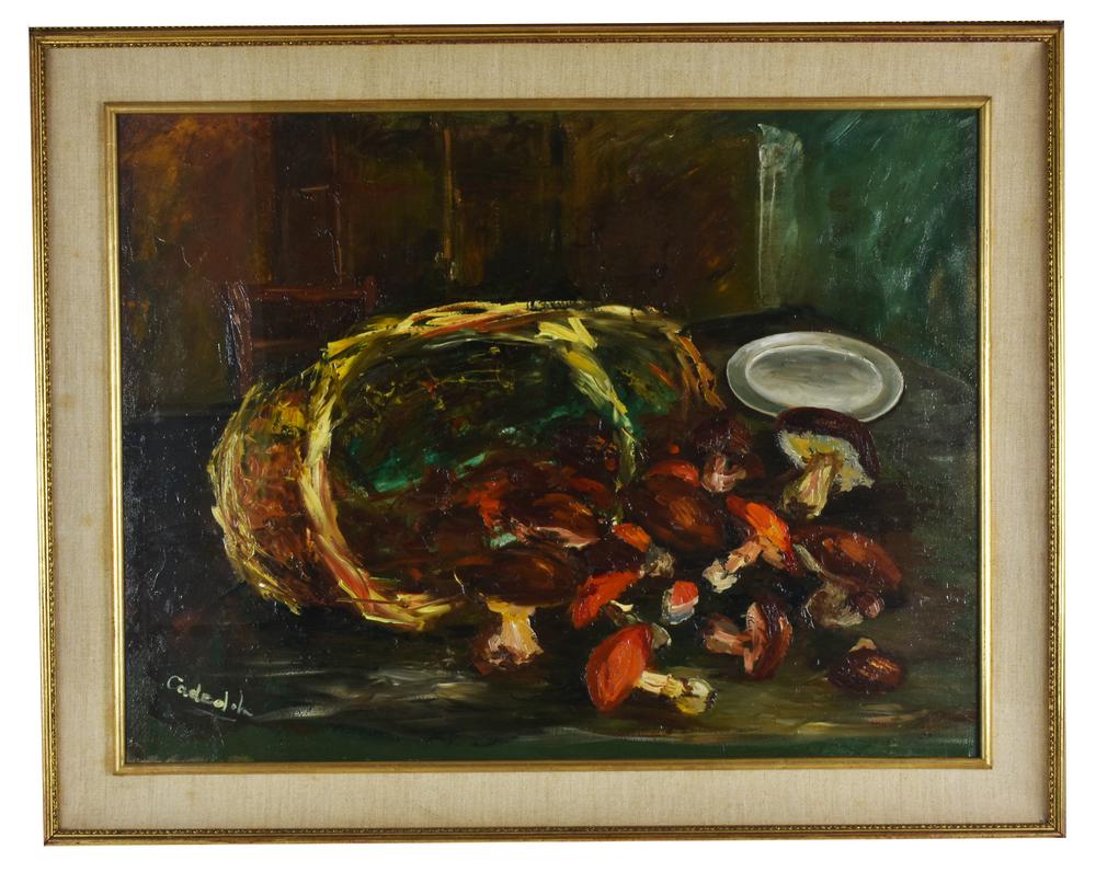 Lotto 17 | Cadeddu G. NATURA MORTA CON FUNGHI olio su tela, cm 60x80 sul fronte: firma