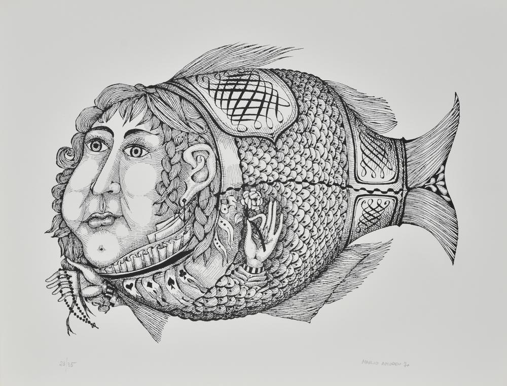 Amodeo Manlio PESCE MATRONA litografia su carta, cm 50x65 esemplare 23 su 35 sul fronte: firma e data eseguita nel 1970