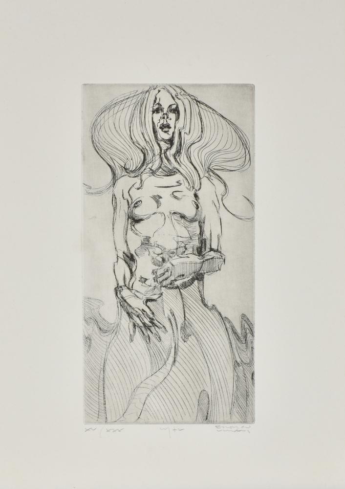Villani Enrico FIGURA FEMMINILE incisione su carta, cm 48x34 (lastra cm 31,5x16,5) esemplare XV su XXX sul fronte: firma