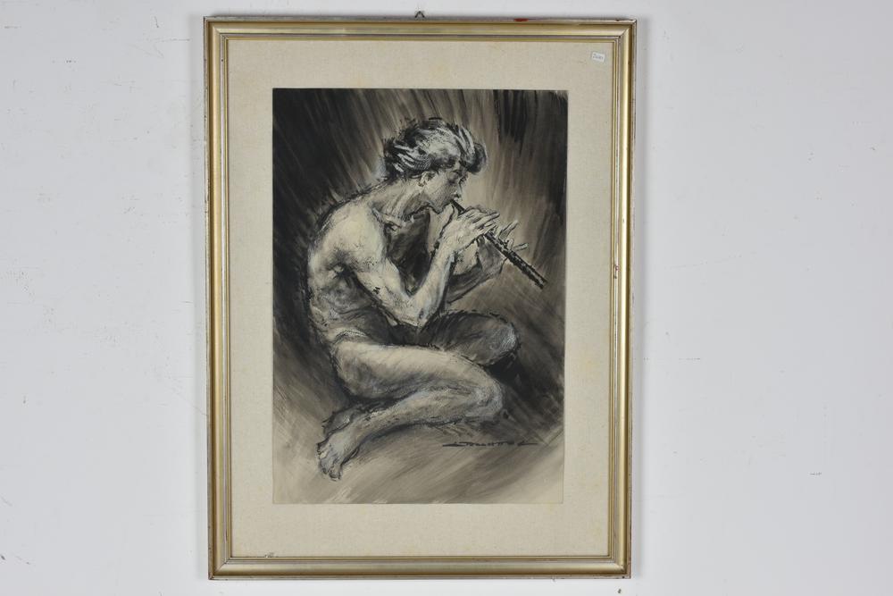 Togliatto Luigi FAUNETTO CON PIFFERO tecnica mista su carta, cm 50x35 sul fronte: firma eseguita nel 1968