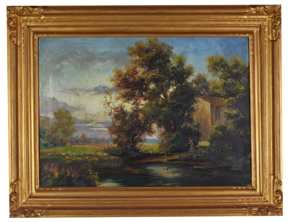 Lotto 57 | Ignoto PAESAGGIO DI CAMPAGNA olio su tela, cm 50x70 sul fronte: firma