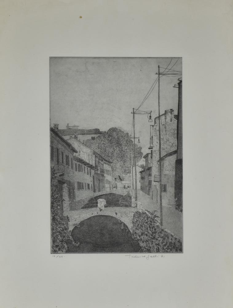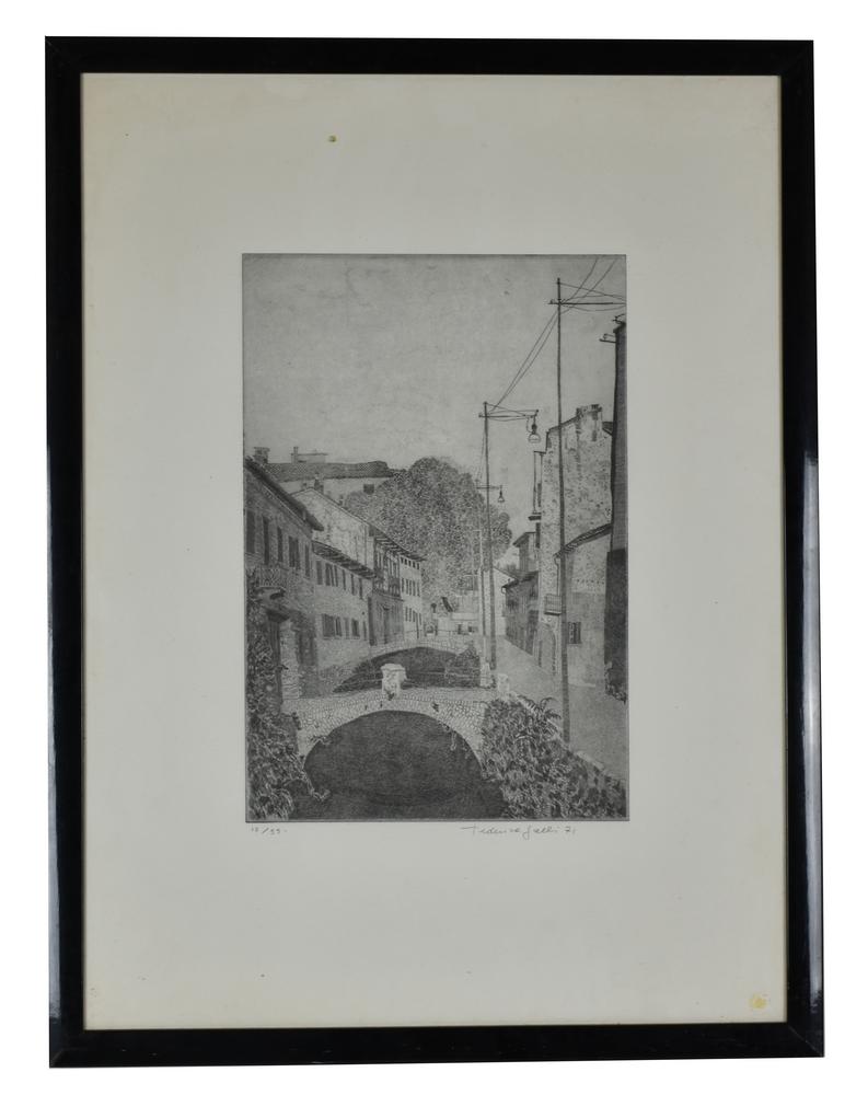 Galli Federica I PONTI SUL CANALE incisione su carta, cm 60x45 (lastra cm 35x24) esemplare 17 su 99 sul fronte: firma e data eseguita nel 1971